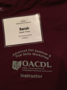 Attorney Sarah Toney was a guest speaker at the Ohio Association of Criminal Defense Lawyers annual Advanced DUI seminar on March 10-12, 2016. The seminar was attended by Judges, prosecutors, experts, and defense attorneys and was held in Columbus, Ohio.